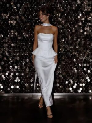 SoDigne Mermaid Short Wedding Dresses Strapless Sleeveless Bridal Dress Beach Lace Wedding Gown Robe De Mairee Customized